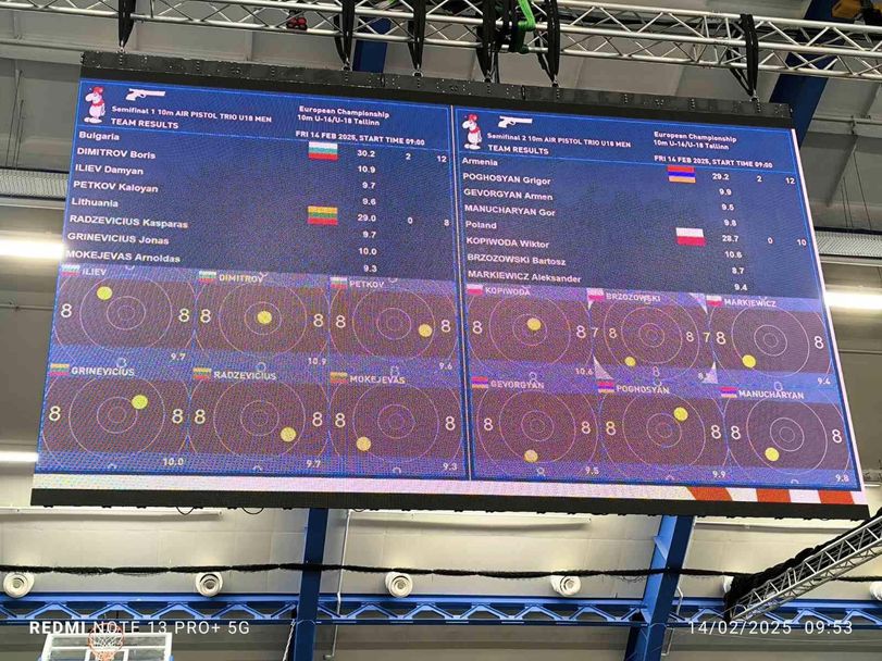 Триото Дамян Илиев, Борис Димитров и Калоян Петков спечели втори златен медал за България на Европейското първенство по спортна стрелба за юноши и девойки до 16 и до 18 години в Талин (Естония).