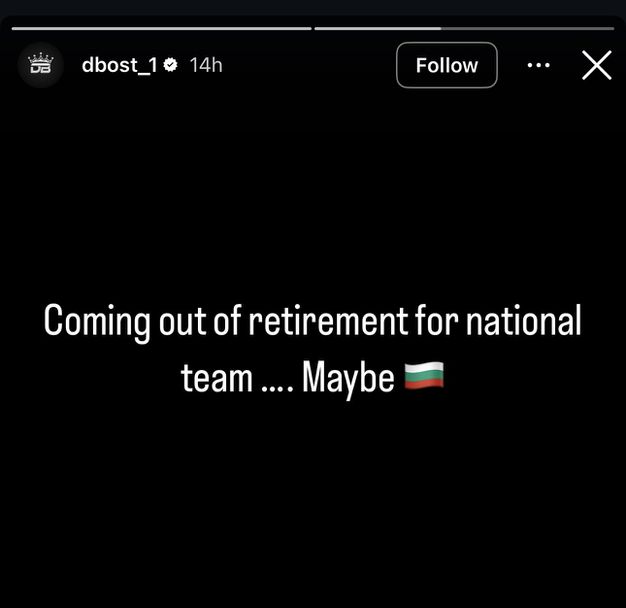 Американският гард с български паспорт Дий Бост намекна за завръщането си в националния отбор на страната ни. Той използва за целта социалната мрежа Инстаграм, където сподели кратко послание, съчетано с българското знаме.