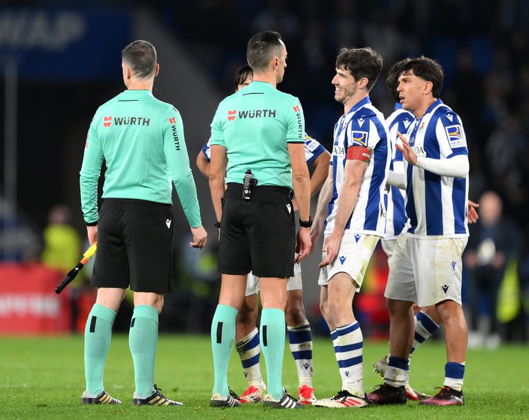 Дойдоха последните минути, в които по традиция винаги е интересно. Този път се стигна до спорно положение за дузпа в полза на Сосиедад за фал на Менди срещу Кубо, но сигнал не последва. Междувременно пък халфът на Реал Мадрид Дани Себайос се контузи и напусна терена.