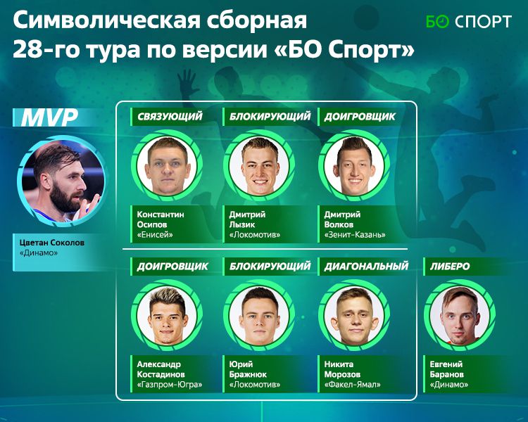 Волейболистите на Константин Брянский се наложиха като гости над Зенит (Санкт Петербург) с 3:1 (25:22, 25:22, 23:25, 25:21) в дербито от 28-ия кръг.