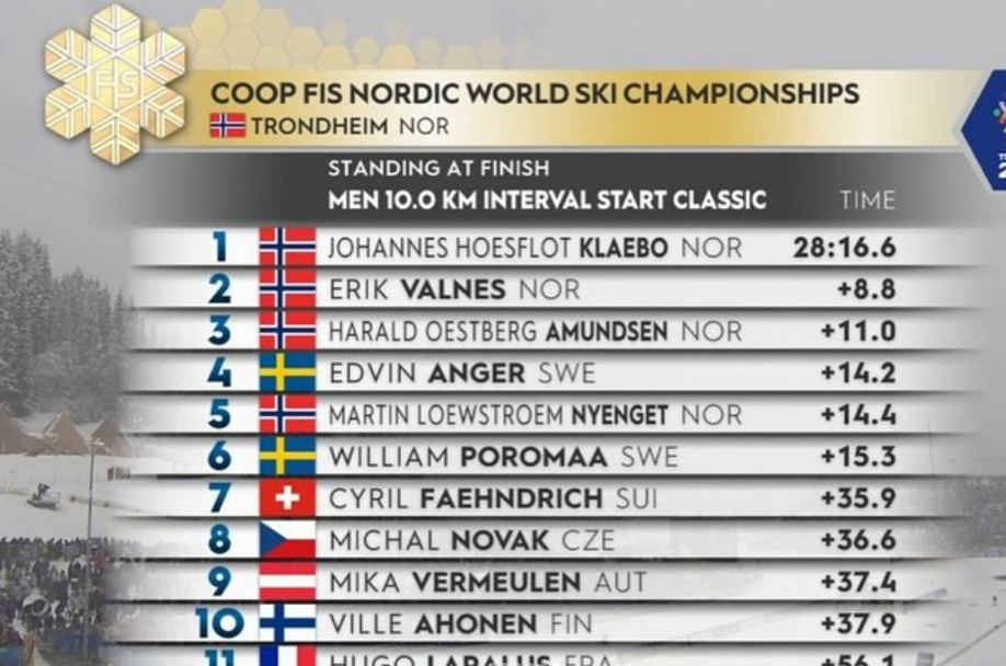 Това е 12-та световна титла за Йоханес Клаебо от световни първенства за мъже.