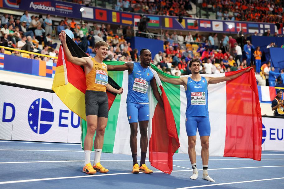 Бронзовият медалист в тройния скок от Олимпийските игри в Париж през миналата година Анди Диас Ернандес спечели първото си злато за новата си родина Италия на Европейското първенство по лека атлетика в зала в Апелдорн. 29-годишният кубинец се намеси в битката за медалите едва в третия си опит, когато скочи 17.05 м и излезе на трета позиция. Ернандес пропусна четвъртия, но “избухна” при петото си излизане в сектора и извоюва титлата с най-добър резултат в света за сезона от 17.71 м.