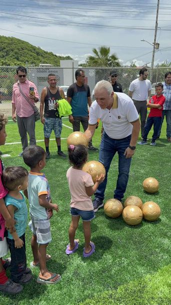 След почти 15-часов полет от София до Кито на най-успелия български футболист се наложи да лети и с двуместен самолет. Камата прие предизвикателството с усмивка и веднага седна до пилотът. В кампа малчуганите бяха подготвени, че идва една от най-именитите световни звезди. Стоичков обядва с децата, поигра футбол с тях, а накрая им раздаде 200 златни топки от своя бранд H8S.