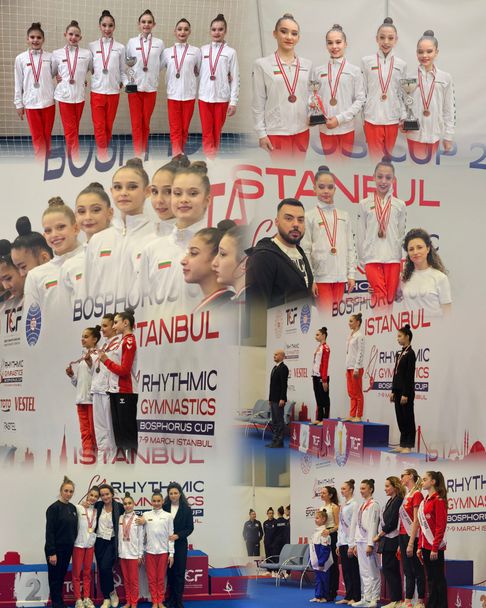 Общо 14 медала, от които 10 златни, 3 сребърни и 1 бронзов, спечелиха българските състезателки на на международния турнир и на съпътстващата надпревара по художествена гимнастика "Bosphorus Cup" в Истанбул (Турция).