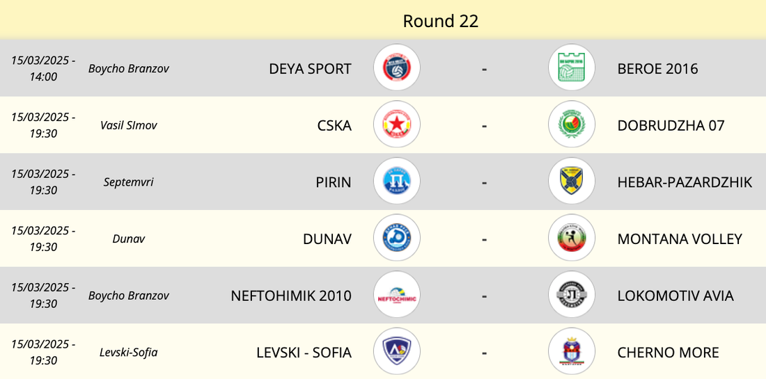 Един успех в последните 2 мача гарантира на Дея спорт участие на 100% в плейофите. В 21-ия кръг момчетата на Андрей Николов гостуват на Добруджа 07 в Добрич, а в 22-ия кръг приемат Берое. дори и 2 загуби на бургазлии може напълно реално да ги оставят на 7-о място в крайното класиране.