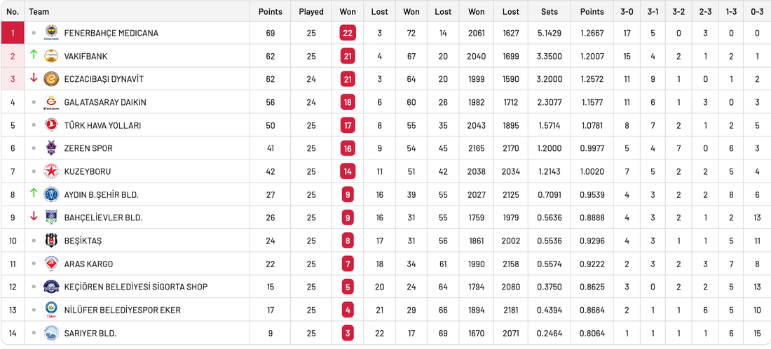 С този успех Фенербахче Медикана запазва първата позиция с 69 точки (22 победи, 3 загуби).