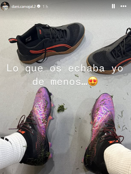 Защитникът на Реал Мадрид Даниел Карвахал разкри, че е направил важна крачка във възстановяването си. Той сподели снимка от съблекалнята на тима, от която се разбира, че вече носи футболни обувки, което означава, че е подновил тренировки на терен. Карвахал е аут от октомври насам, когато претърпя операция на коляното заради скъсани предни кръстни връзки на десния крак.