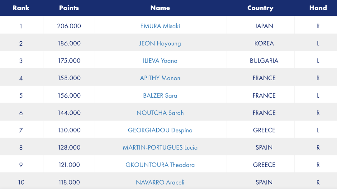Българката е и една от най-младите в Топ 10. Двете с корейката са на по 23 години като няма друга състезателка под тази възраст сред най-добрите на сабя при жените.