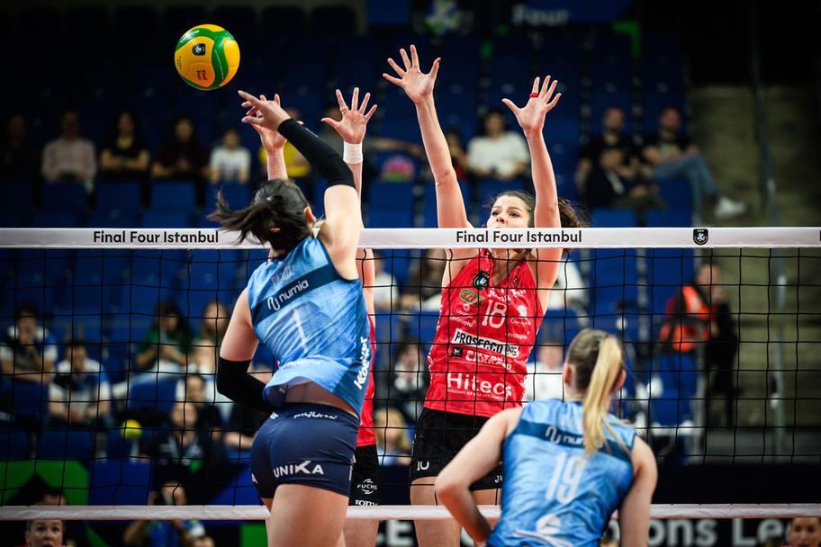 Отборът на А. Караро Имоко (Конеляно) победи Нумия Веро Волей (Милано) с 3:1 (25:21, 20:25, 25:17, 25:23) в италианското дерби в първата полуфинална среща от Шампионската лига по волейбол за жени, който се игра в зала “Юлкер Спортс Арена” в Истанбул (Турция) пред 3300 зрители.