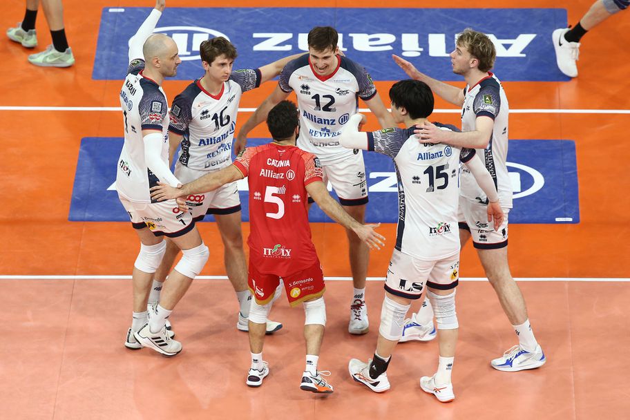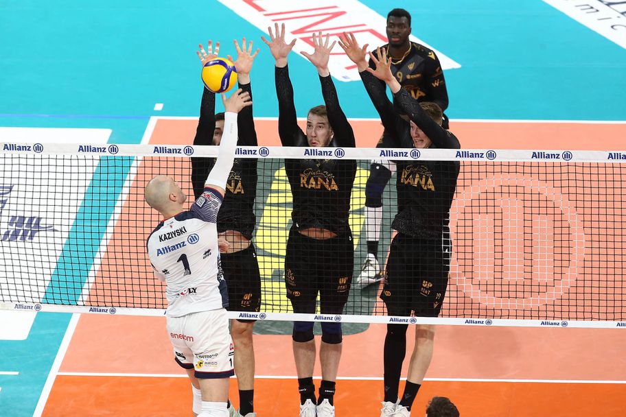 Воденият от Роберто Пиаца отбор надигра Рана (Верона), който до скоро бе воден от Радостин Стойчев, с 3:2 (25:22, 25:19, 24:26, 20:25, 15:11) в полуфинален сблъсък, изигран в "Алианц Клауд".
