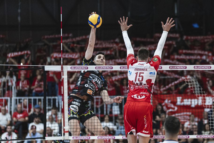 Шампионът на Италия за 2024 година победи като гост изключително драматично Газ Сейл Блуенерджи (Пиаченца) с 3:2 (21:25, 25:21, 21:25, 25:17, 20:18).