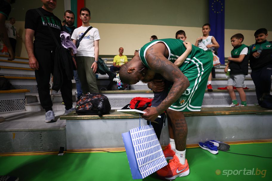 За да изненада своя любим баскетболист, в зала "Общинска" се появи малкият Крис, който Sportal.bg ви представи като талисмана на Първис в специално видео наскоро.