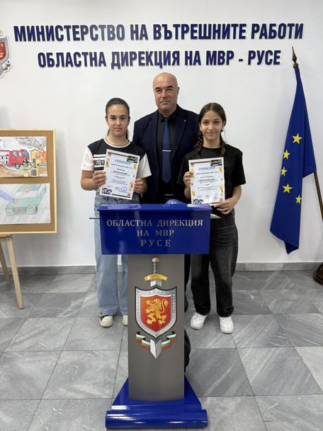 Възпитаници на Средно училище „Йордан Йовков“ и на Спортното училище „Майор Атанас Узунов“ грабнаха първите места в регионалния русенски конкурс за рисунка „Аз и детското полицейско управление“. Наградите им бяха връчени лично от директора на Областната дирекция на МВР ст. комисар Николай Кожухаров, заместник областния управител Георги Георгиев и началника на Регионалното управление на образованието д-р Росица Георгиева.
