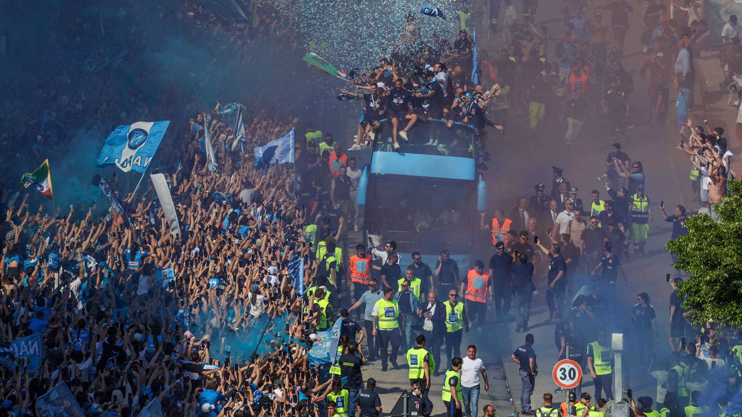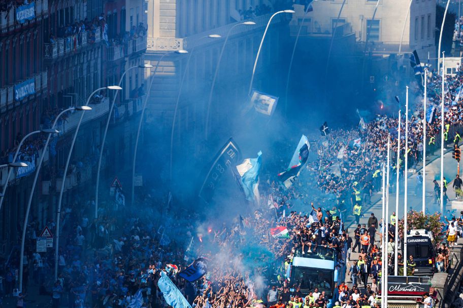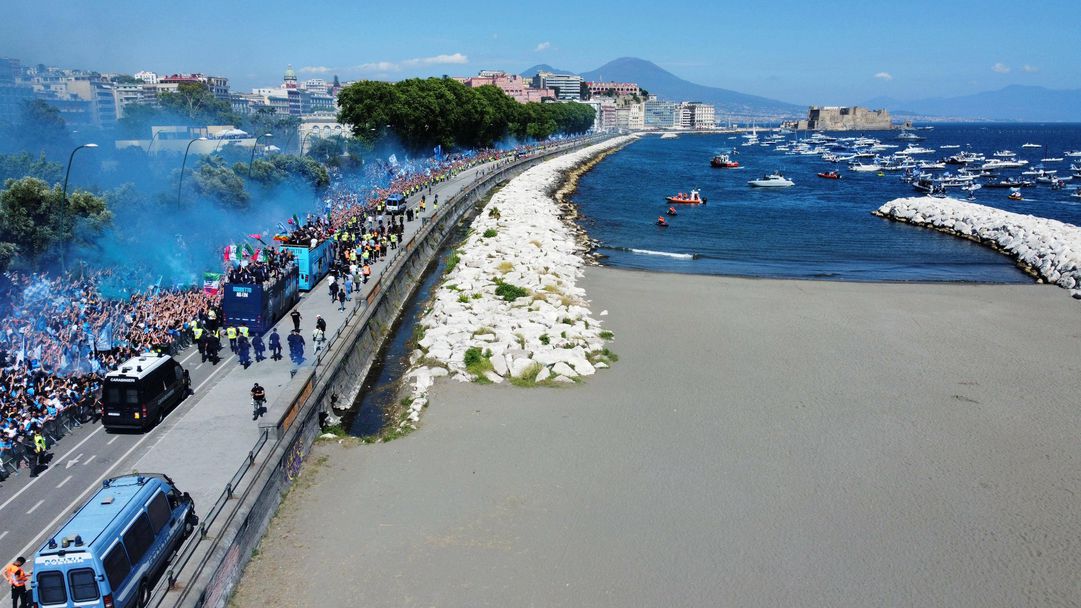 Над 150 000 фенове се събраха по крайбрежните улици на Неапол, за да приветстват отбора, който стана шампион на Италия. Играчите и треньорите минаха в два отворени автобус. Част от празненствата беше президентът на клуба Аурелио Де Лаурентис, както и кметът на Неапол Гаетано Манфреди.