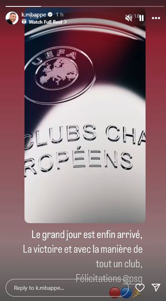 Бившият нападател на Пари Сен Жермен Килиан Мбапе побърза да поздрави парижани за триумфа в Шампионската лита. Френският гранд по безапелационен начин спечели финала с Интер с 5:0 и вдигна трофея за пръв път в историята си.