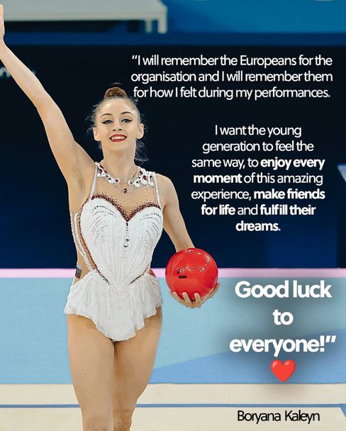 Олимпийската вицешампионка и абсолютна европейска шампионка за 2023 Боряна Калейн пожела успех на участничките в 41-вото европейско първенство по художествена гимнастика в Талин (Естония) от 4 до 8 юни.
