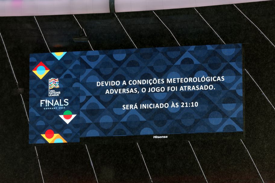 Срещата трябваше да започне по план точно в 22:00 часа българско време, но вместо 22-мата футболисти да излязат на терена, те останаха в режим на изчакване заради проливния дъжд, който се изля над Мюнхен.