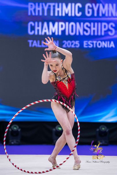 Ева Брезалиева също представи стабилно композицията си с обръч и е с трета оценка след втория поток 28.750 точки (12.9, 7.900, 7.950).