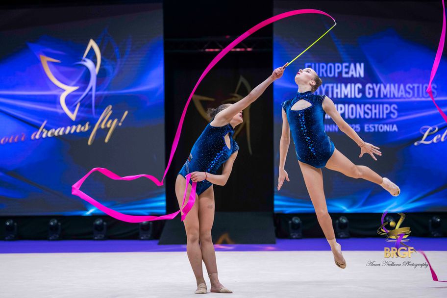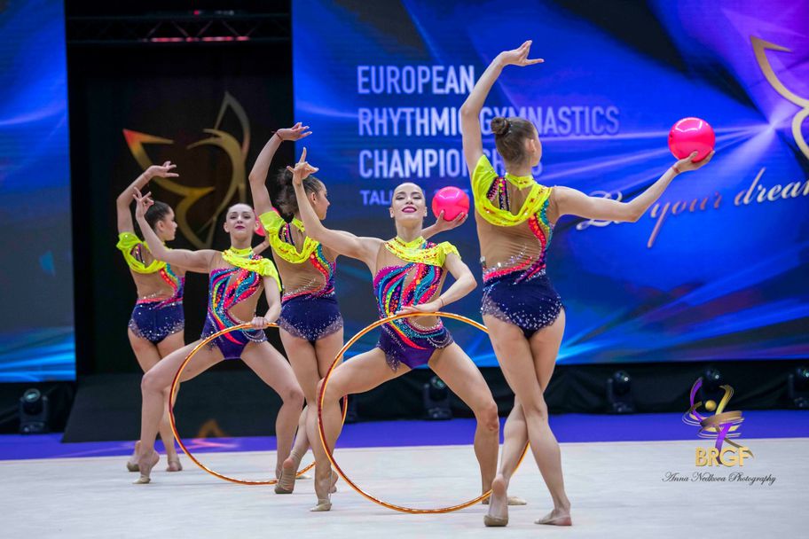 Ансамбълът на България за жени завърши на 15-о място в класирането за многобоя, а националките се наредиха пети отборно на Европейското първенство по художествена гимнастика в естонската столица Талин.