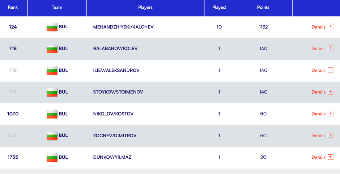 След добро участие на турнира Фючърс в Свети Влас още 3 български двойки спечелиха по 140 точки за световната ранглиста и момента заемат 718 място: Балабанов/Колев, Илиев/Александров и Стойков/Стоименов.