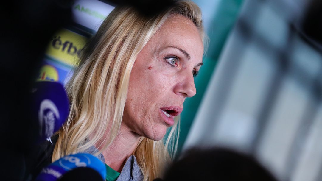 Селекционерът на женския национален отбор на България по волейбол за жени Антонина Зетова говори пред медиите на летище “София” при завръщането на тима ни от Канада, където се изигра първия турнир от Лигата на нациите (VNL).
