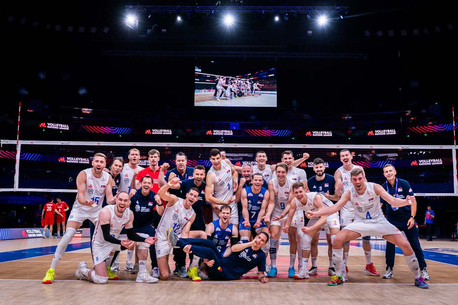 Мъжкият национален отбор на Сърбия стартира с победа участието си в тазгодишната Волейболна Лига на нациите. При официалния дебют на новия си селекционер Джордже Крецу сърбите обърнаха и се наложиха над Турция с 3:1 (12:25, 25:22, 25:23, 25:23) в първия си мач от турнира в Група 3 на комерсиалната надпревара, игран този следобед пред над 2000 зрители в залата в Сиан (Китай).