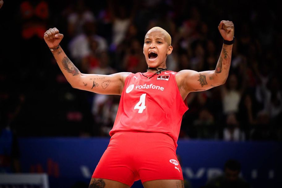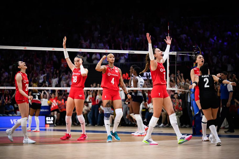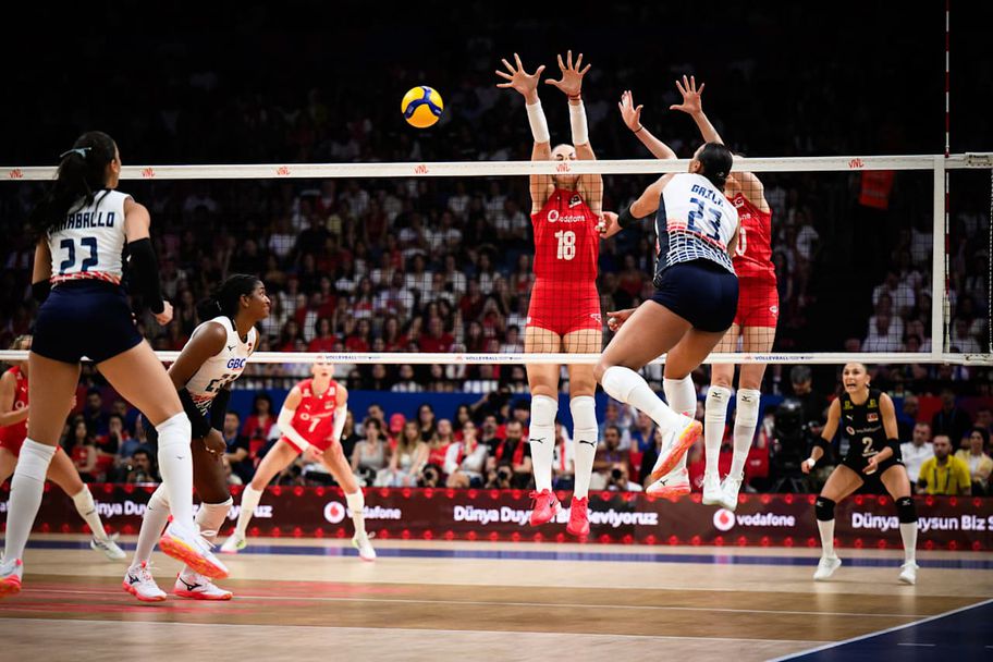 Европейският шампион Турция продължава да е непобеден в тазгодишната Волейболна Лига на нациите за жени, след като записа 5-а поредна победа. Момичетата на Даниеле Сантарели надиграха категорично Доминиканската република с 3:0 (27:25, 25:19, 28:26) в първия си мач от турнира в Група 4 на основната фаза, на който са домакини, игран снощи в пълната с близо 15 000 зрители зала "Синан Ердем Доум" в Истанбул.