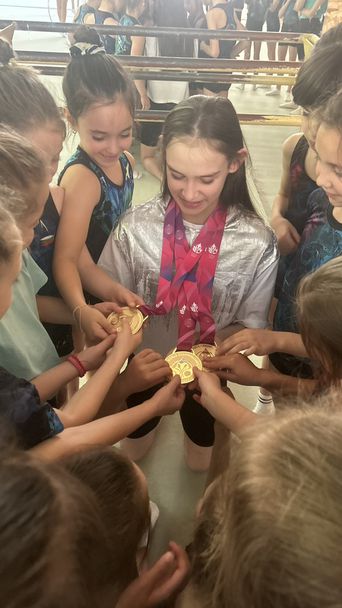Малки и големи гимнастички поздравиха Ивайла за огромния успех на шампионата на планетата за девойки в София, а тя беше видимо развълнувана и щастлива от топлото посрещане, което й организира нейният роден клуб "Левски Триадица".