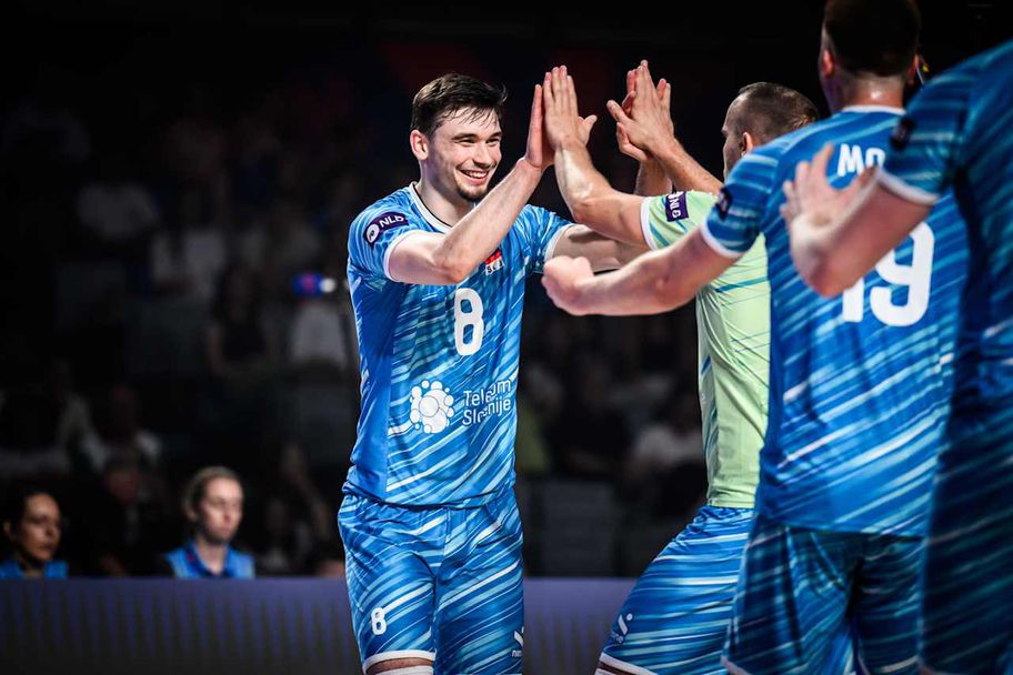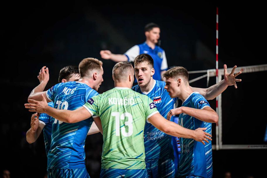 СЛОВЕНИЯ: Нейч Найдич 1, Тончек Щерн 14, Рок Бръчко 12, Рок Можич 12, Ян Кожамерник 7, Сашо Щалекар 4 - Яни Ковачич-либеро (Урош Планиншич, Ник Муянович, Клемен Шен)