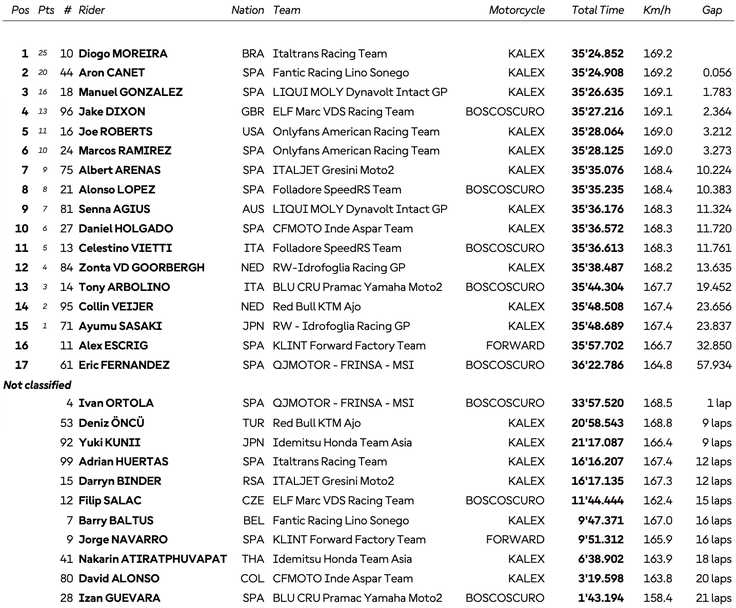 Диого Морейра спечели играта на нерви с Арон Канет и донесе историческа първа победа за своята родина Бразилия в средния клас на световния шампионат по мотоциклетизъм на писта, след като триумфира в надпреварата за Гран При на Нидерландия.