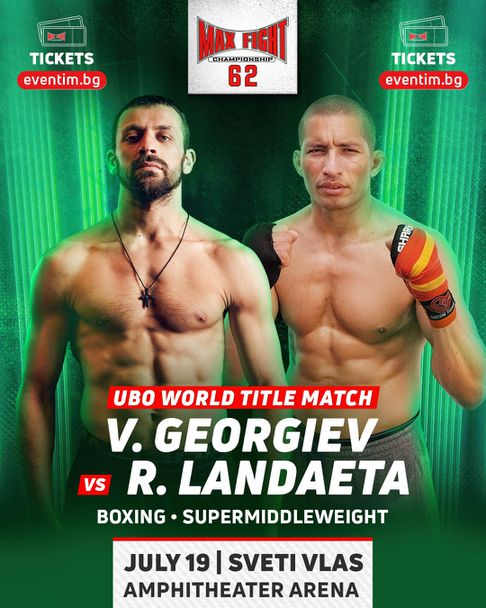 Владимир Георгиев в мач за световната титла на UBO на MAX FIGHT 62! На 19 юли в Свети Влас Българския бик влиза в най-важната битка в кариерата си – за вакантната световна титла на UBO в суперсредна категория.