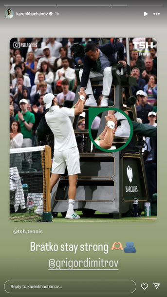 Джокович написа "Братко, обичам те" под формата на знак "сърце" в Инстаграм, а подобно беше съобщението и на Карен Хачанов: