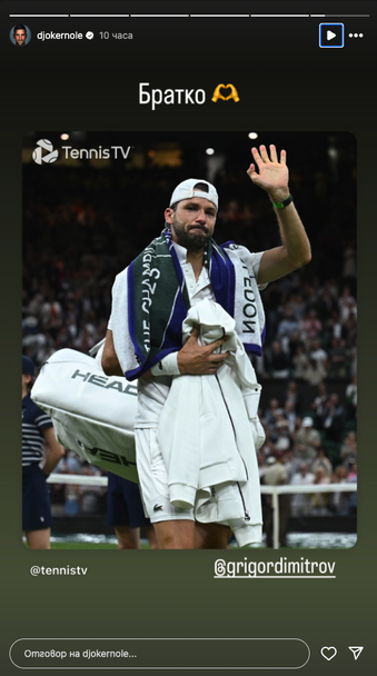 Новак Джокович отправи послание към Григор Димитров след злощастната контузия на българина на осминафиналите на "Уимбълдън" от водеща позиция 2-0 сета срещу световния номер 1 Яник Синер.