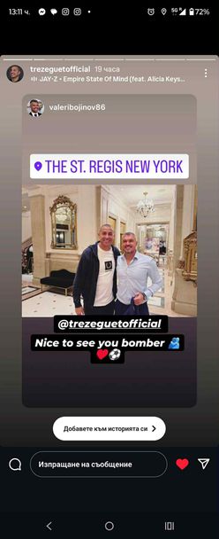 Валери Божинов имаше шанса да се срещне и поговори с две популярни имена от света на футбола - Давид Трезеге и Вилиан. Това стана в Ню Йорк, където бившия национал наблюдава на живо полуфиналите от Световното клубно първенство.