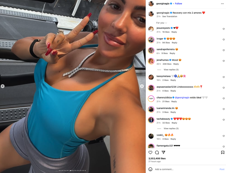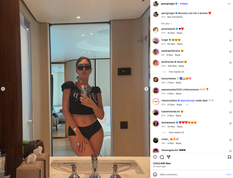 Джорджина показа на своите 67.2 млн. последователи в Инстаграм как прекарва поредната си ваканция със своя любим Кристиано Роналдо. Сексапилната брюнетка опроверга слуховете, че е бременна, показвайки пищното си тяло по бански или по-изрязани дрехи.
