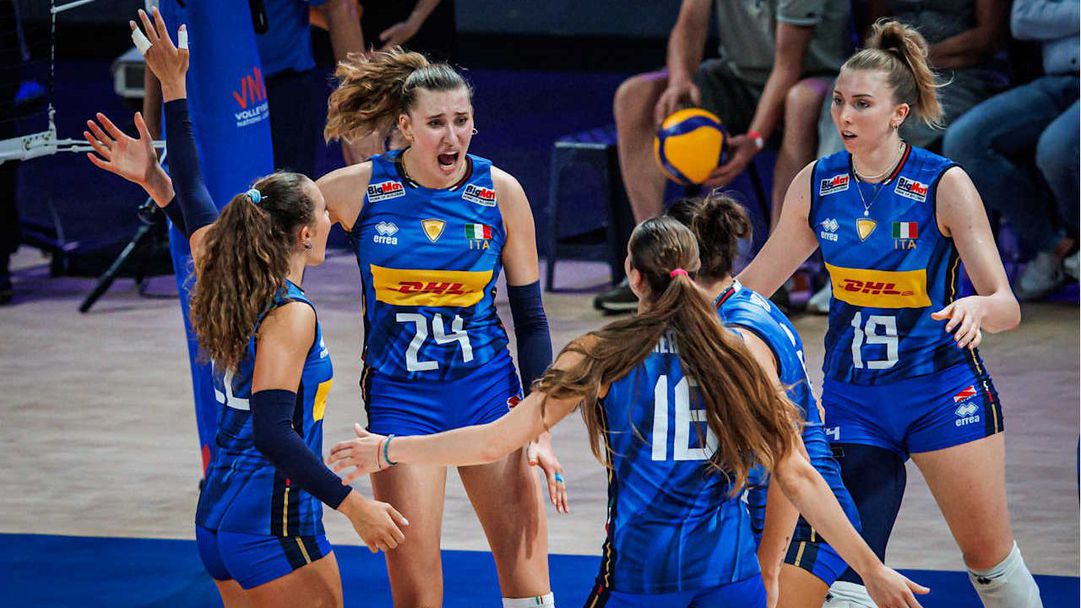 Олимпийският шампион Италия завърши по перфектен начин в основната фаза на тазгодишната Волейболна Лига на нациите, след като записа 12-а поредна победа. Момичетата на Хулио Веласко се наложиха категорично над Нидерландия с 3:0 (25:23, 28:26, 25:18) в последния си мач от турнира в Група 7 от третата седмица, игран тази вечер пред над 5500 зрители в зала "Омниспорт" в Апелдоорн.