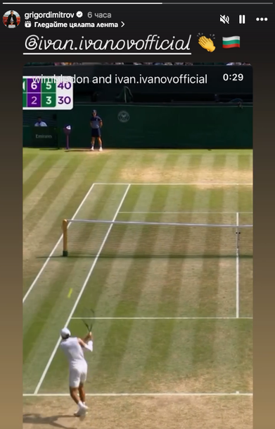 Минути след успеха на Иванов, Григор публикува в профила си в Инстаграм видео от последната точка, като добави към него емотикони с аплодисменти и българското знаме.