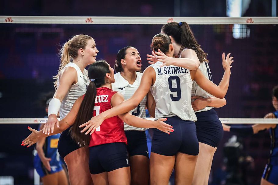 САЩ: Джордин Пултър 2, Медисън Скинър 5, Сара Франклин 8, Ейвъри Скинър 11, Дейна Ретке 7, Амбър Иджиеде 5 - Алексис Родригес-либеро (Лоугън Игълстън 1, Стефани Самеди 7, Калия Лейниър)