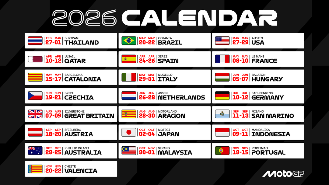 Организаторите на MotoGP представиха календара на световния шампионат по мотоциклатизъм на писта, който включва общо 22 кръга.