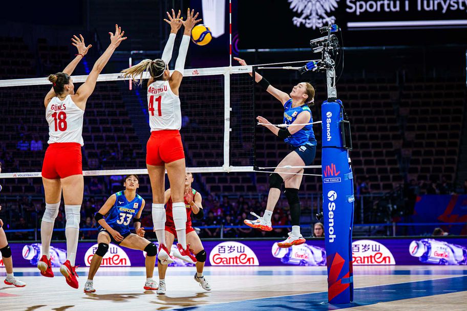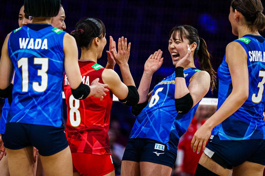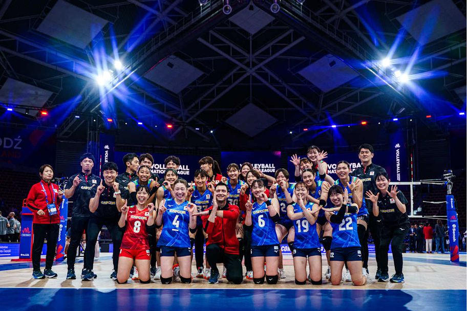 Женският национален отбор на Япония се класира за полуфиналите на тазгодишната Волейболна Лига на нациите. Воденият от Ферхат Акбаш тим надделя изключително трудно и драматично над европейския шампион Турция с 3:2 (25:21, 16:25, 25:20, 22:25, 15:9) в 3-ия мач от 1/4-финалите на финалния турнир, игран тази вечер пред над 1500 зрители в зала "Атлас Арена" в Лодз (Полша).