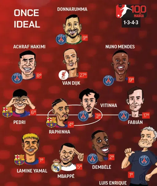 За най-добър треньор беше избран наставникът на ПСЖ Луис Енрике. Също така бяха съставени два идеални състава: един в международен мащаб и един само за испанските футболисти. В първия освен Ямал, Дембеле и Витиня бяха включени Джанлуиджи Донарума, Ашраф Хакими, Нуно Мендеш и Фабиан Руис от ПСЖ, Педри и Рафиня от Барселона, Вирджил ван Дайк от Ливърпул и Килиан Мбапе от Реал Мадрид.