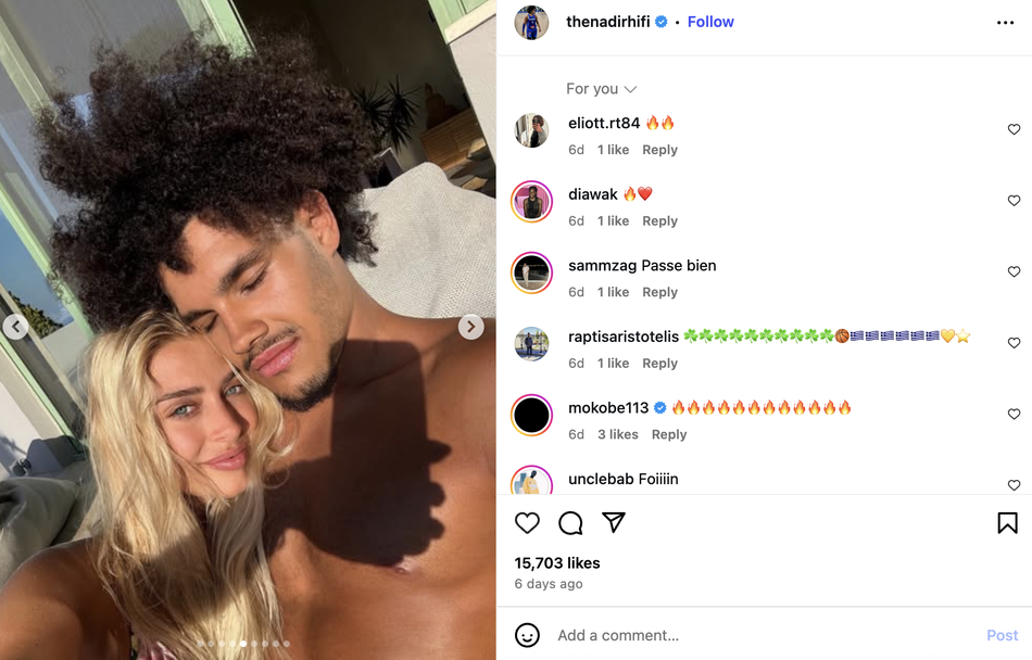 На една от големите звезди на Париж Баскетбол Надир Хифи определено има за какво да му завиждат. Баскетболистът се гушка с уникална красавица, с която двамата наскоро се показаха заедно в социалните мрежи.