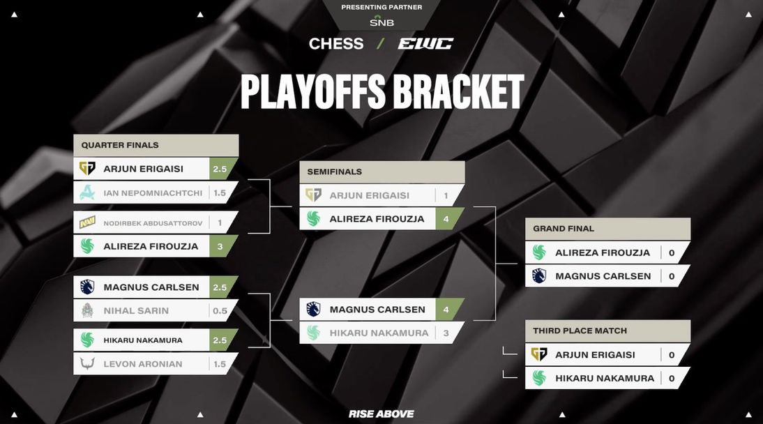 Докато Карлсен и Фируджа ще играят за голямата награда от 250 000 долара, Накамура ще се изправи срещу Арджун в битка за третото място и сумата от 145 000 долара.