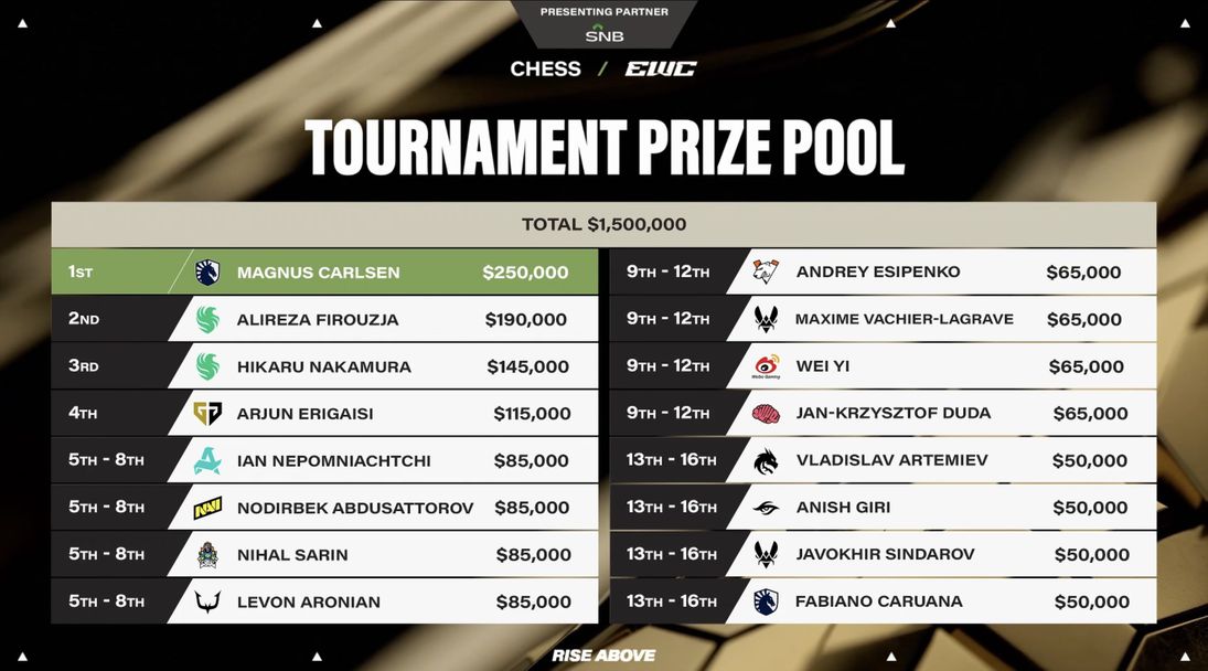 Освен това, има 27 милиона долара награди за отборите по електронни спортове, като представянето на Карлсен помогна на Team Liquid да излезе начело в класирането.