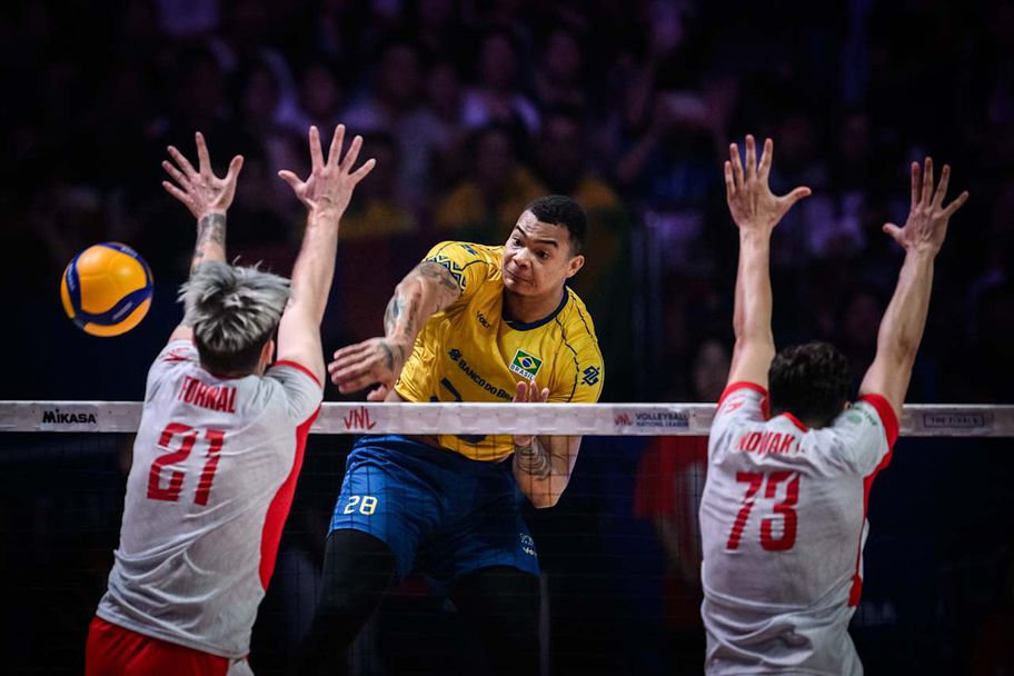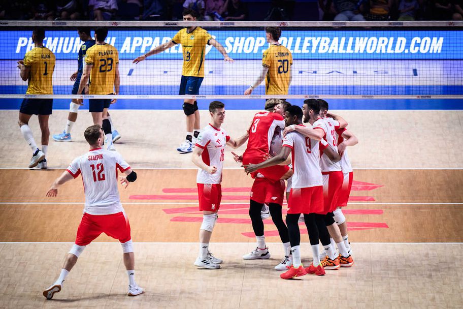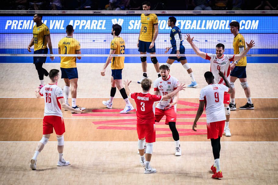 Лидерът в световната ранглиста Полша победи отбора на Бразилия, който спечели груповата фаза на Лигата на нациите, с 3:0 (28:26, 25:19, 25:21) във втория 1/4-финал от VNL, който се игра в Нинбо (Китай) пред 6000 зрители.