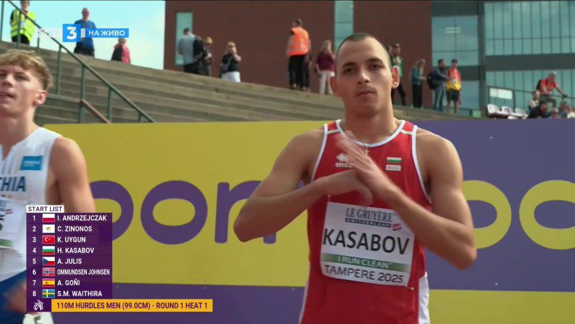 Християн Касабов стартира отлично и заслужено спечели серията си на 110 метра с препятствия на Европейското първенство по лека атлетика до 20 г. в Тампере.