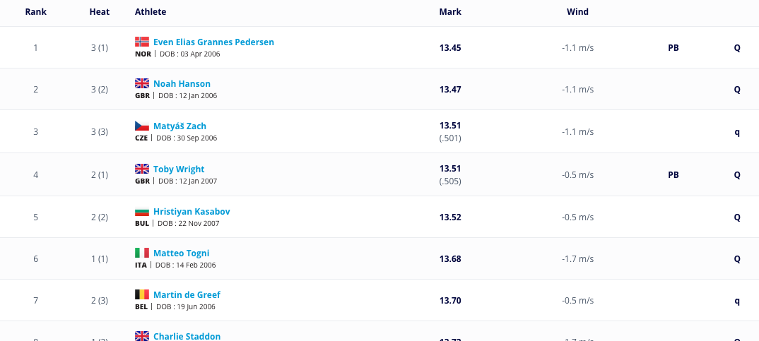 Победител в серията на българина стана британецът Тоби Райт с 13.51 сек, като само фотофинишът разчете разликата между двамата.