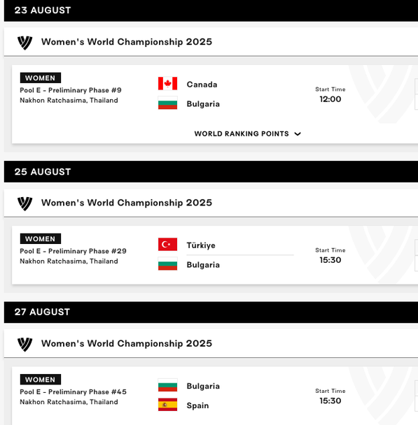 В събота България излиза за първи си мач на Световното първенство в Тайланд отново срещу Канада от 12:00 часа.