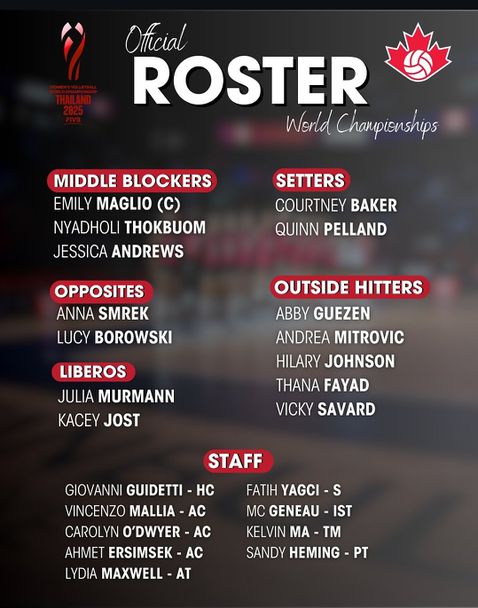 Женският национален отбор на Канада ще бъде с леко променен състав за Световното първенство в Тайланд спрямо приятелския турнир "Austiger Cup" в Шънджън (Китай). Вчера "кленовите листа" загубиха от България с 2:3 гейма в последната си среща на турнира и то само дни преди началото на Мондиала.