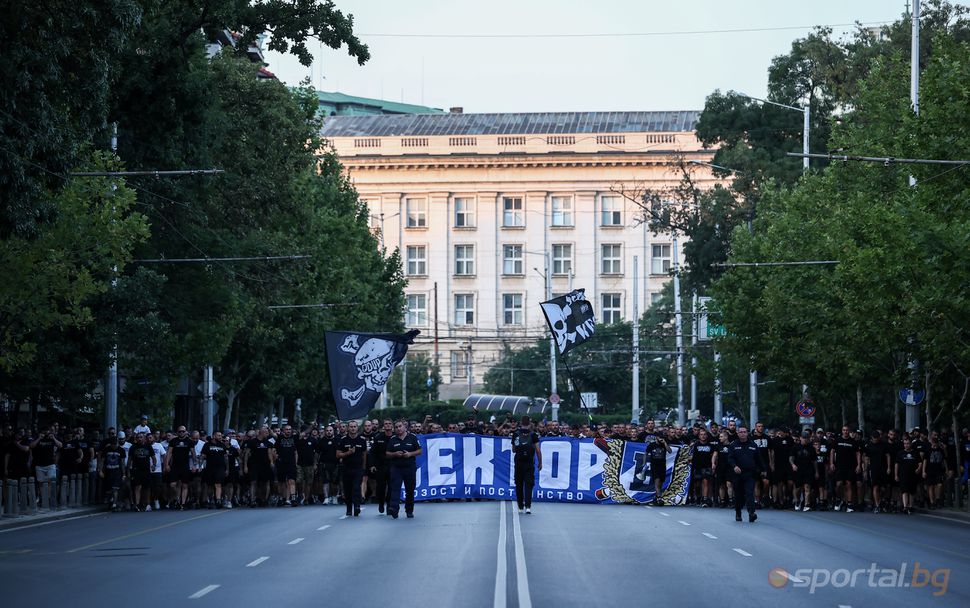 Част от феновете на Левски се събраха в центъра на София за шествие преди сблъсъка с АЗ Алкмаар от плейофите в Лига на конференциите. Запалянковците тръгнаха малко след 18:30 часа към стадион "Васил Левски" от булевард "Тодор Александров".
